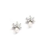 Ever-so-delicate. These dainty cubic zirconia and freshwater pearl earrings have a spray of baby marquis to add a delicate touch to any bridal or bridesmaid look.