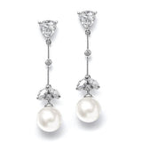 Trillion Dangle Pearl Bridal Earrings