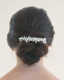 With an ideal balance of pearl and crystals, the Pearl and Flower Leaf Stone Hair Comb is a perfect accent to a low chignon or rest it above your veil for a sparkling veil topper.