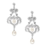 Earrings fit for a princess! The Royalty Chandelier Earrings feature a vintage scroll design encrusted with pave crystals. The 6mm and 8mm ivory pearl accents dangle in elegance.