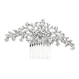 This opulent bridal hair comb is all the shimmer and shine you'll need for your walk down the aisle. The twinkling of elegant crystal clusters shaped like flowers and vines adds to its exquisiteness.