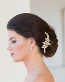 With this swoon-worthy, twisted floral hair clip, your guests will surely do a double-take. The center bloom is filled with crystals and pearls while the twists on each side intertwine into any beautiful chignon. Secured with a clip.