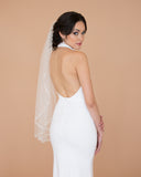 It's all in the details! Lavish your bridal look with this scalloped fingertip wedding veil. The scalloping includes hand-beaded sequin and silver beads that is glamour yet demure.